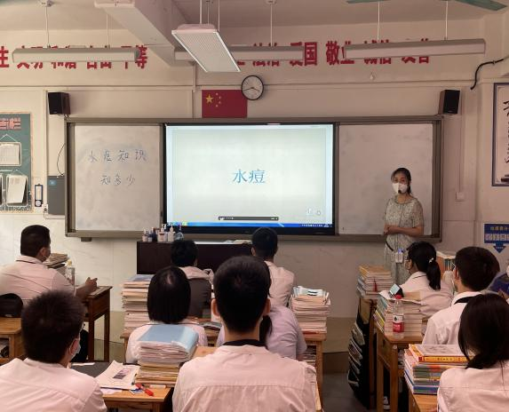 同学们从视频内容学习到什么是水痘,水痘的发病机理,水痘的症状,水痘的传播途径和水痘的预防方法等方面,给同学们普及了预防水痘的相关小知识,并结合生物学知识展开提问学生,包括水痘病毒是一种什么样的病毒、它结构组成是什么、生活方式又是什么、水痘病毒的遗传物质是什么等回归生物课堂,真正将课堂知识和实际生活结合起来。