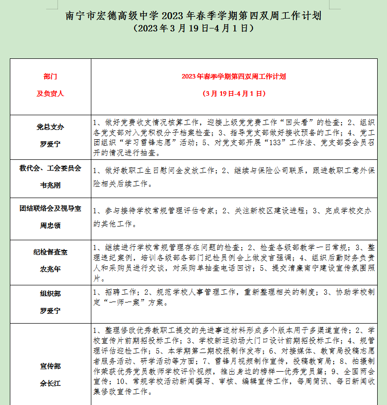 2023年春学期第四双周工作计划