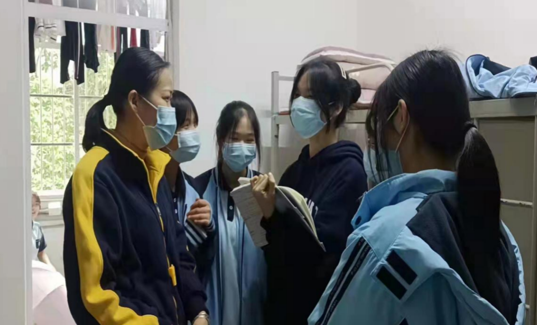我校实行班主任查寝和教官管理制度,每个楼层都配备有教官指导学生生活。疫情封校期间,除了校领导高度重视培养学生的防控意识和学生心理健康状况,每个楼层宿舍教官也深入走进学生宿舍并指导同学们如何做好内务,倡导学生们养成良好的生活习惯,关心学生们的身体状况,叮嘱同学们关注天气变化,营造一个舒适温暖的生活环境。因疫情封校有少部分学生有暴躁情绪,教官耐心与他们交谈,关注他们的心理健康,对他们进行心理辅导给与他们关怀,让他们感受到如家般的温暖,缓解了学生焦虑的情绪。