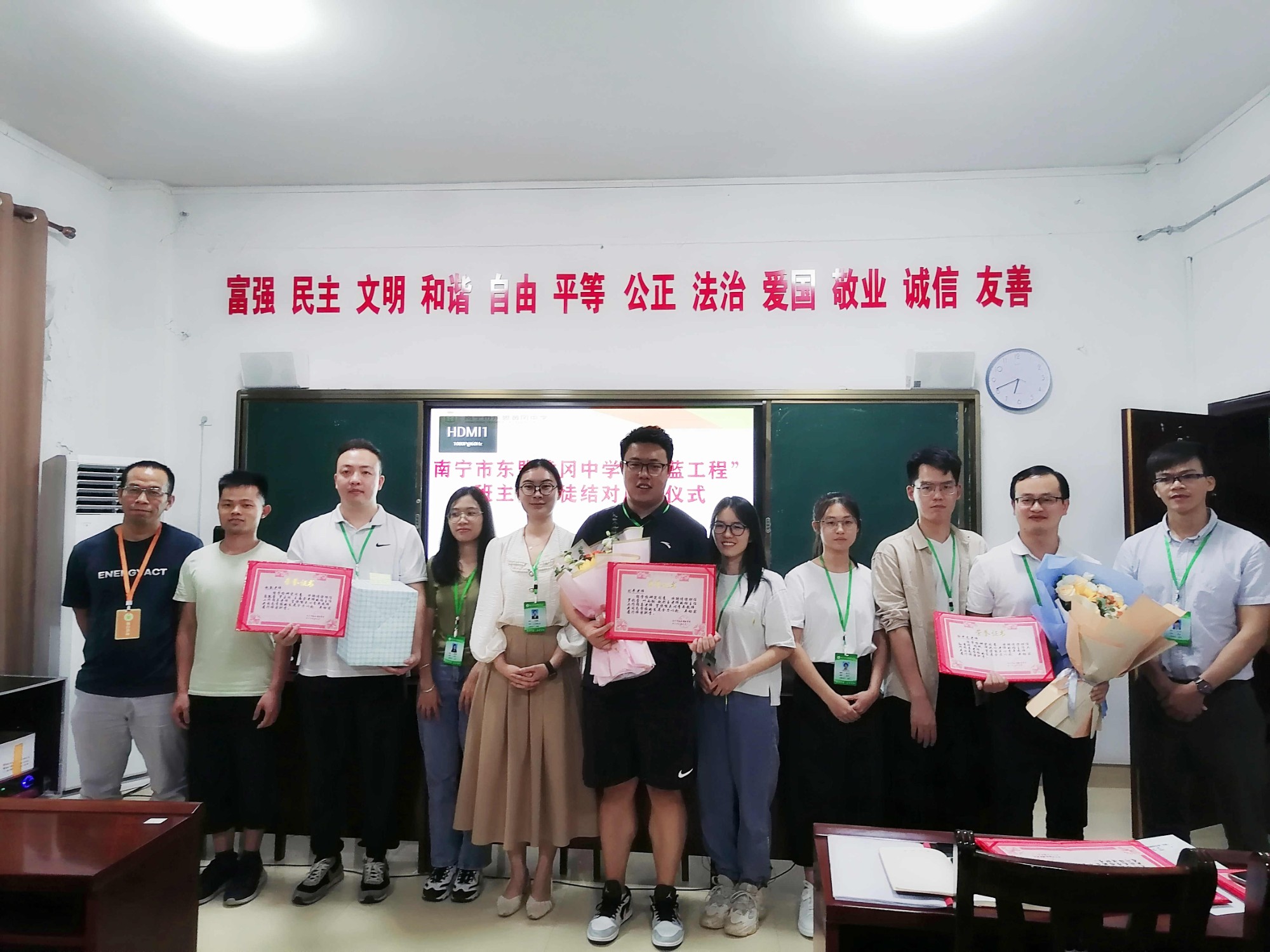 为加强对年轻班主任的指导,提升班主任工作的艺术性和实效性,提高班级管理水平。9月23日,南宁市东盟黄冈中学举行“胜蓝”工程班主任师徒结对仪式,共结成33对师徒。