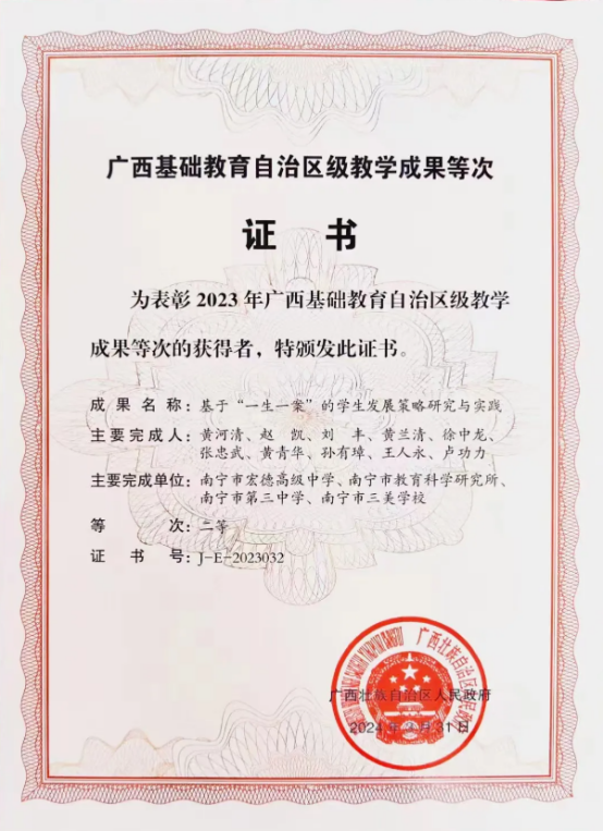 一、喜报!南宁市宏德高级中学荣获广西基础教育自治区级教学成果奖二等奖