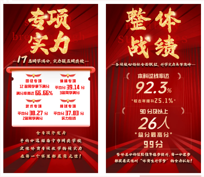 2026届全区体育统考,本科过线率达 92.3%,总分最高 99 分,17 名同学斩获专项满分
