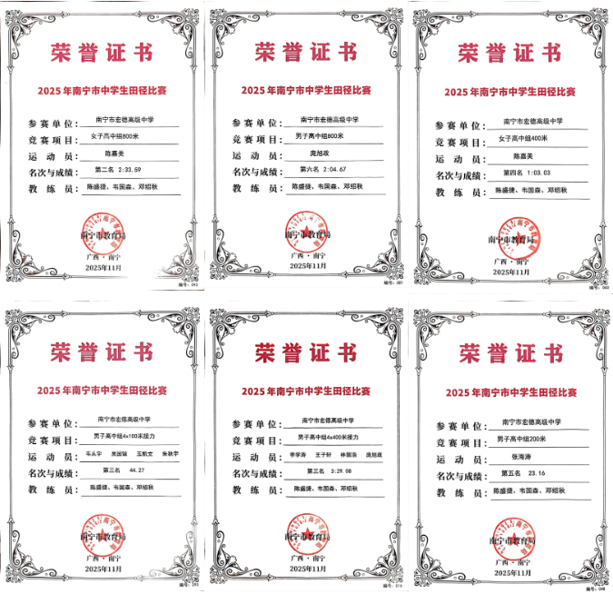 11名同学在2025年南宁市中学生田径比赛中获奖