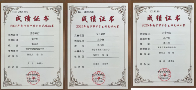 6名同学在2025年南宁市中学生羽毛球比赛中获奖