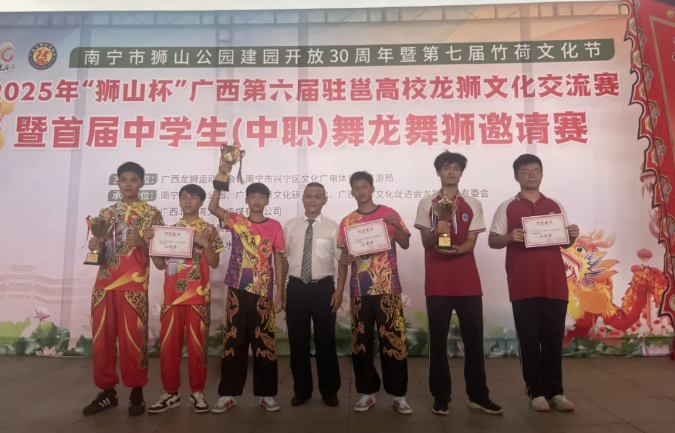 龙狮队同学在“狮山杯”广西首届中学生(中职)舞龙舞狮邀请赛中荣获二等奖