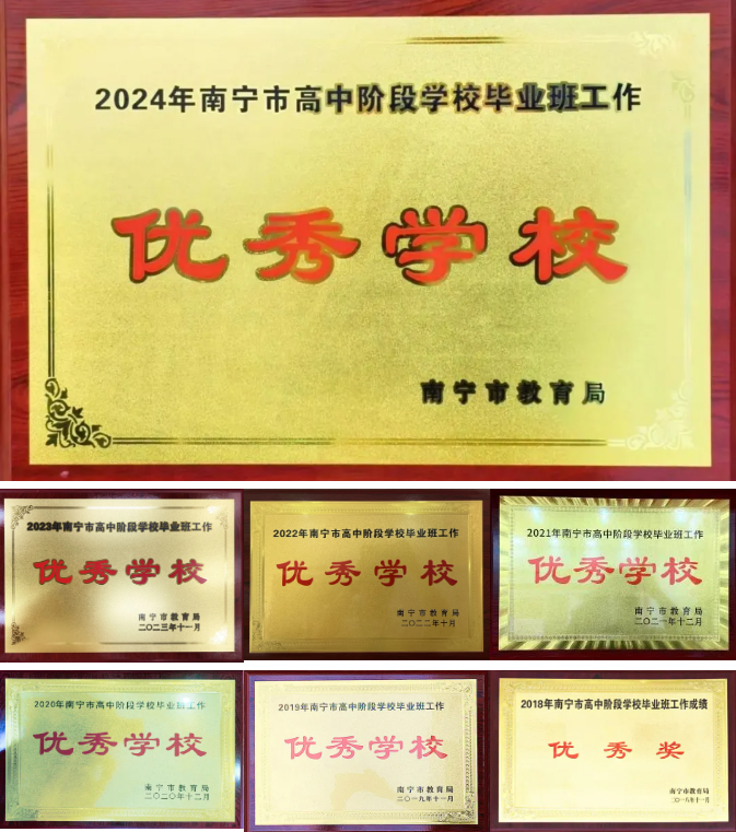 升学奇迹,见证实力:我校教育教学质量连年攀升,实现 “低进高出、高进优出、优进尖出” 的办学成效。众多学子高考成绩较中考录取名次大幅前移,成功考取澳门大学、新疆大学、东南大学、中南大学、四川大学、西南民族大学等知名院校。自 2017 年首届高考以来,连续 7 年荣获 “南宁市高中阶段学校毕业班工作优秀学校” 称号。