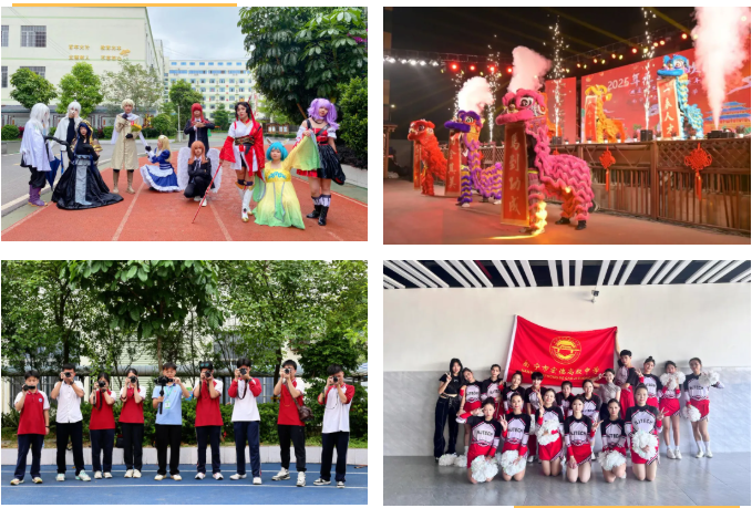 缤纷社团,个性绽放:拥有嘻哈社、动漫社、舞蹈社、电竞社、龙狮队、武术队、摄影社等近百个学生社团,形成 “百团大绽” 的热闹景象,学生在社团活动中发挥特长、提升综合能力。