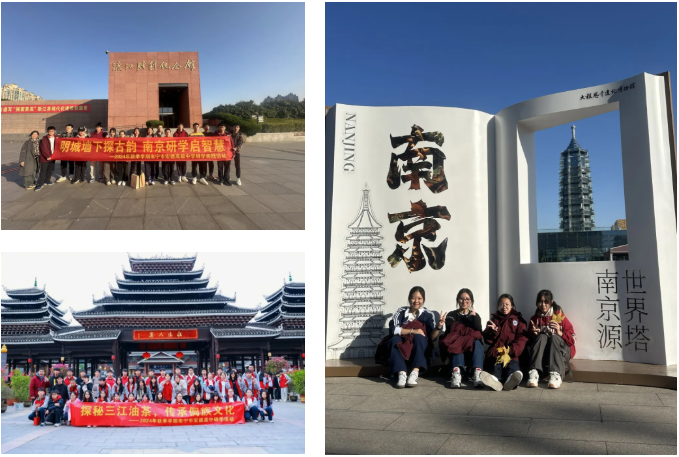 研学实践,知行合一:每学期精心设计前往南京、贵阳、成都、广州、深圳、长沙等地的多条研学线路,组织学生走出校园,走进大自然、博物馆、历史古城、科技园区等,感受中华文化的博大精深、科技发展的日新月异与祖国的大好河山。同时开展慰问老人、社区志愿服务等社会实践活动,让学生在实践中增长才干、磨砺意志、培养社会责任感,成为有担当、有作为的新时代青年。