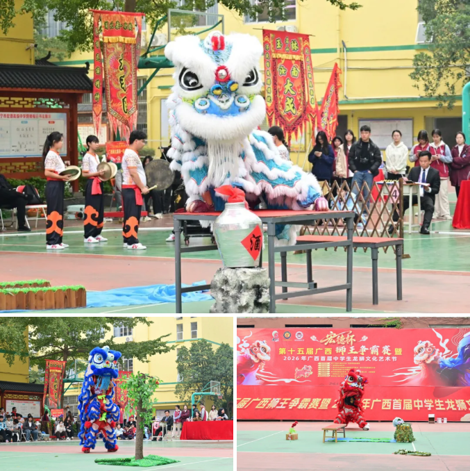 1月17日,“宏德杯”第十五届广西狮王争霸赛暨 2026 年广西首届中学生龙狮文化艺术节在南宁市宏德高级中学燃情启幕!
