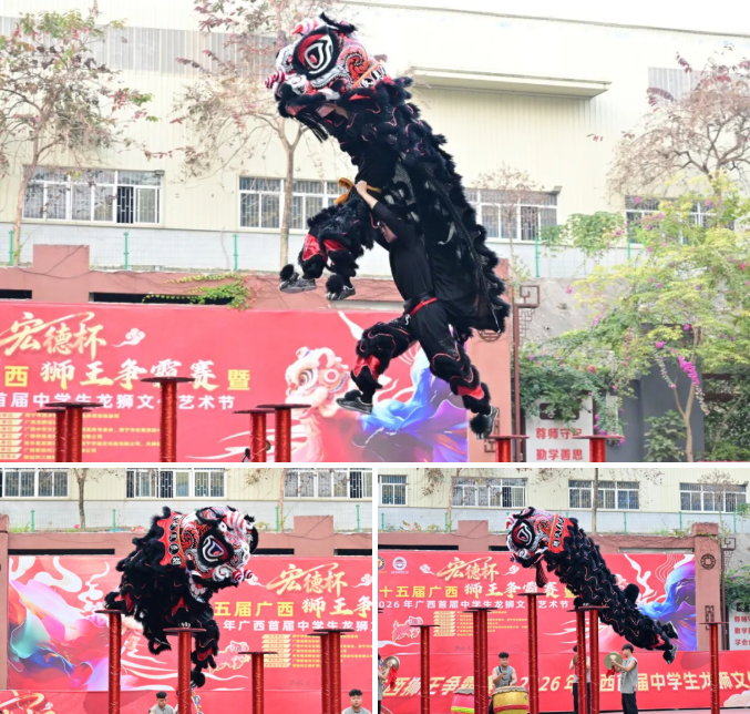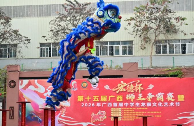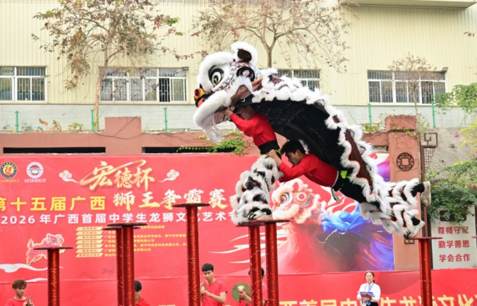 此次“宏德杯”第十五届广西狮王争霸赛暨 2026 年广西首届中学生龙狮文化艺术节的成功举办,不仅为龙狮爱好者提供了交流竞技的平台,更推动了龙狮文化在青少年群体中的传播与传承。