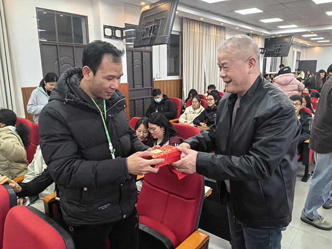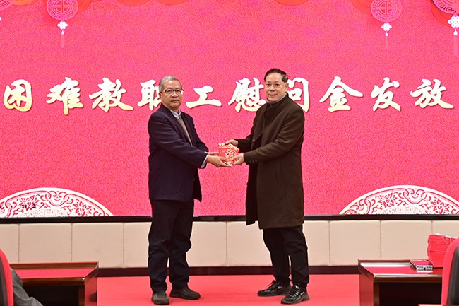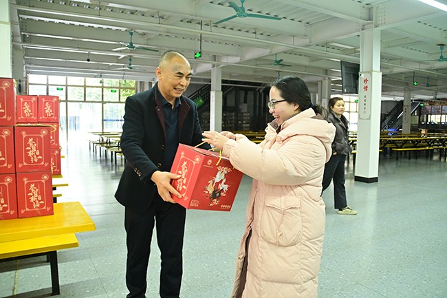 会议现场暖意融融,学校还同步开展了慰问活动。汪培宏书记、校长向学校困难教职工发放慰问金,学校副书记、工会主席韦兆刚代领,传递学校的关怀与温暖,让困难教职工切实感受到宏德大家庭的温情。同时,学校为全体教职工精心准备了新春慰问福利,感谢大家一学期以来的辛勤付出与无私奉献,进一步增强了教职工的归属感与幸福感。