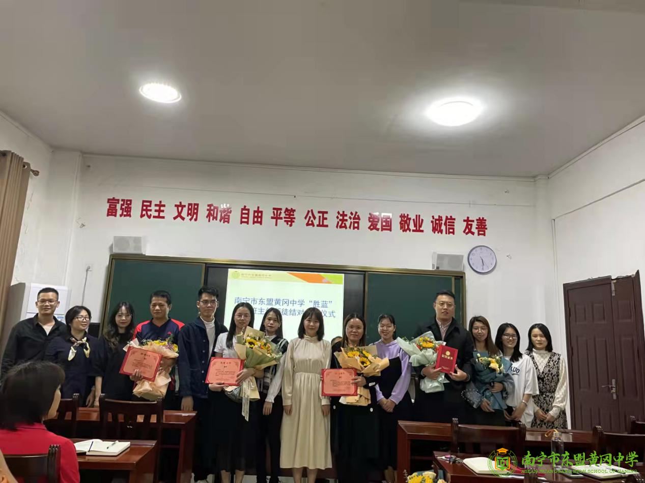为加强对年轻班主任的指导,提升我校班主任工作的艺术性和实效性,并不断加强班主任之间的学习和交流,提高班级管理水平。10月15日,南宁市东盟黄冈中学政教处组织召开了我校首届班主任师徒结对启动仪式。刘丰副校长、赵凯副校长等学校领导和全校班主任出席启动仪式,仪式由政教处副主任李善术主持。