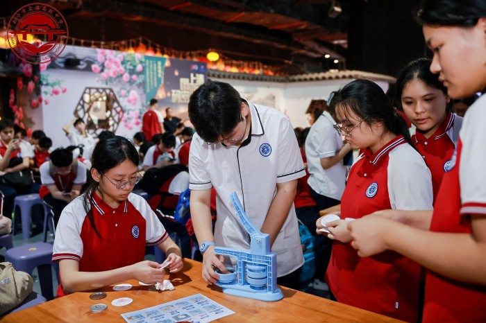 同学们迫不及待地走进祖龙AI科技艺术中心展厅。《清明上河图》AI 活态长卷让千年古画 “动” 了起来,大家驻足凝视,感受着 AI 技术赋予传统文化的新生命力;分小组摊位竞争,学子们仿佛真的穿越到古代,卖力吆喝着自己的商品;AI智能体搭建与创意创作等实践活动,更是让同学们过足了 “科技瘾”。