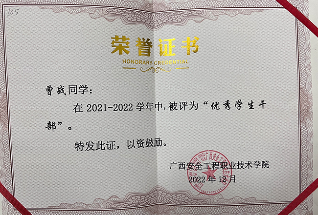 曾战,南宁市宏德高级中学2020届校友,在广西民族学校就读期间表现良好,积极参加勤工俭学,乐于助人,经常帮助老师整理材料。目前在校多次荣获“国家励志奖学金”“三好学生”“优秀班干部”等称号。